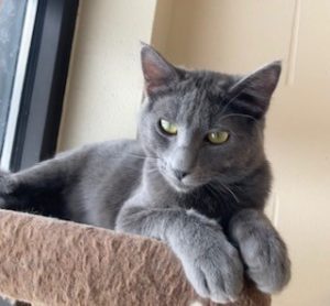 Full Description: Vibrant is a sweet, big gray cat with a gentle, shy nature. Sometimes he’s hesitant to leave his kennel, but he is a big lover once he knows you are a safe person. He seems to not mind other cats company!