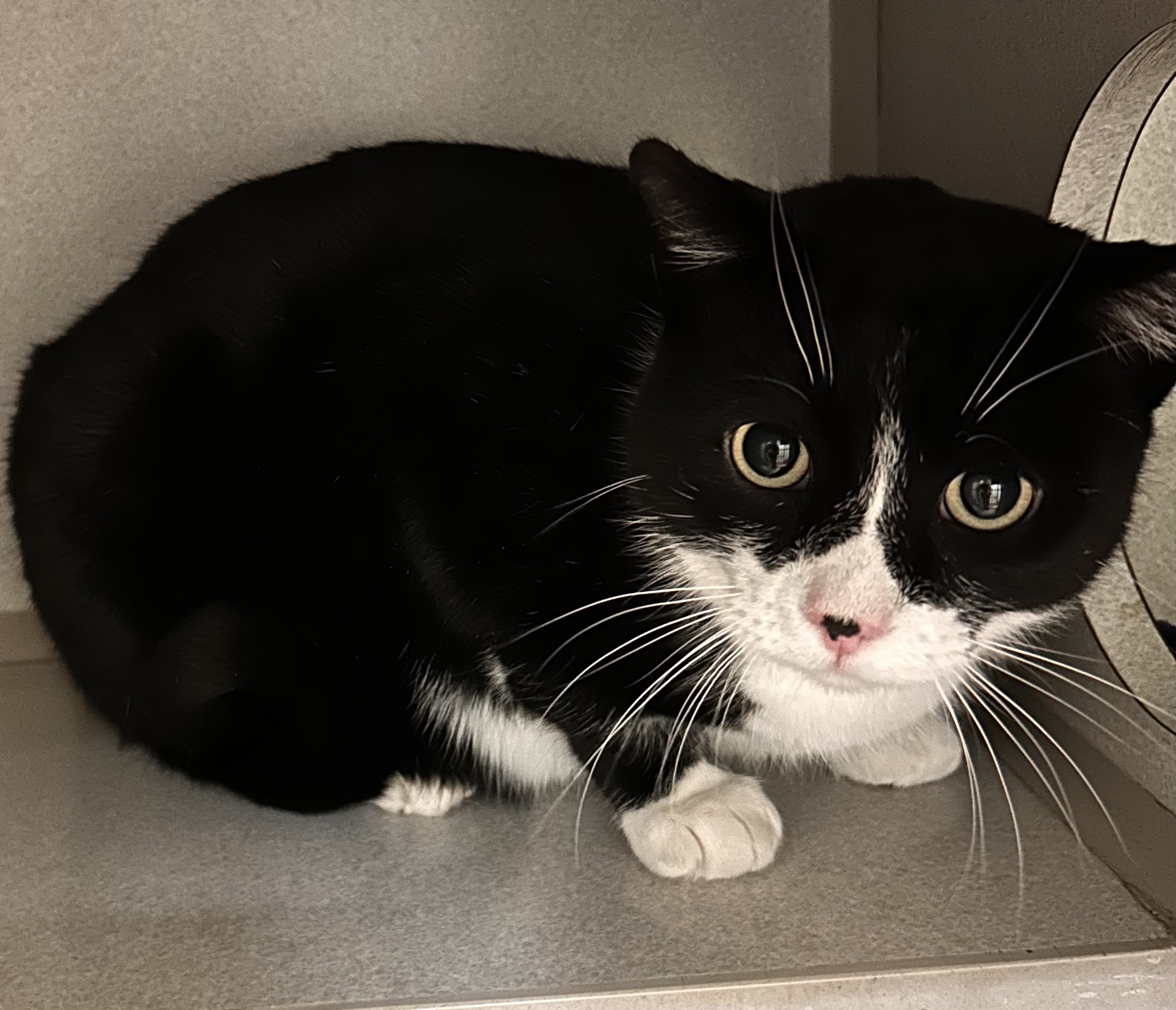 Full Description: Meet Xavier, a gentle and soft black and white cat with a heart full of love. This relaxed and easy-going guy enjoys lounging in cozy spots but is always ready for some human affection. Whether you’re giving him a gentle pet or simply sitting near him, Xavier will happily soak up all the attention. He also has a playful side, really enjoying small toys he can bat around. His sweet nature make him the perfect companion for someone looking for a laid-back and loving feline friend.
